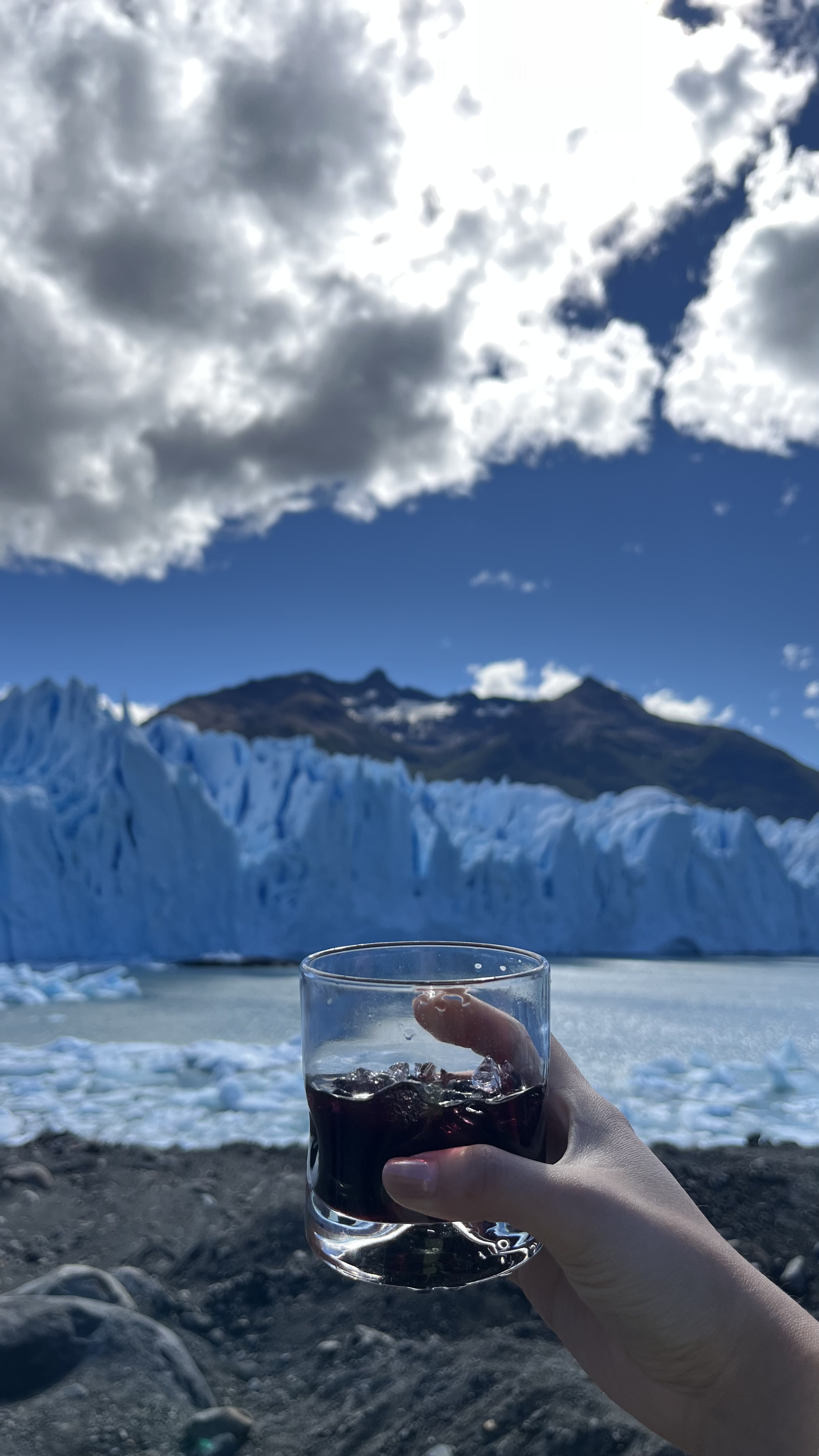 A glass of celebratory surprise with ice from the glacier (as per option selected)