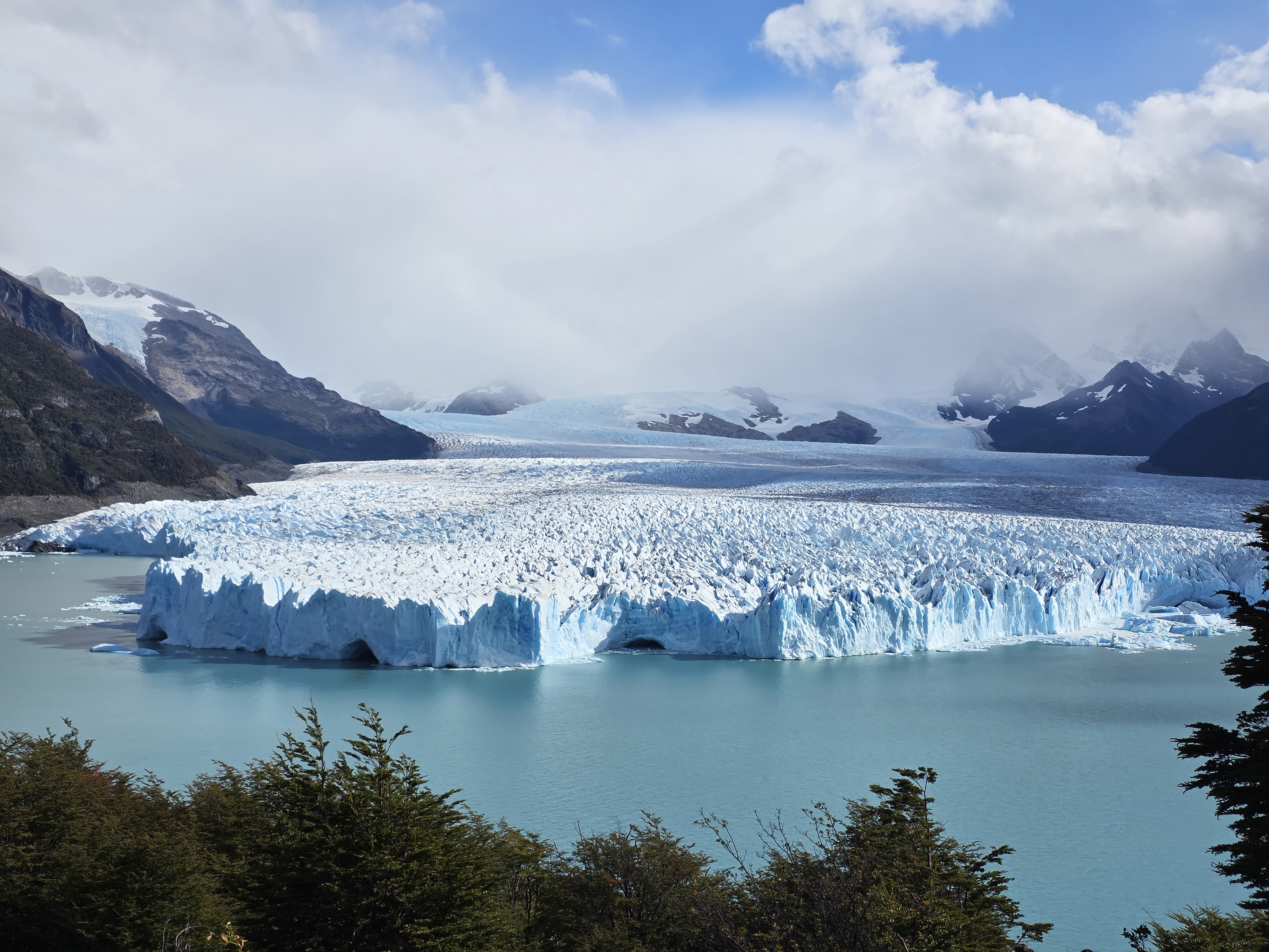 Here’s the star of the show! A 70-meter wall of pure, electric-blue ice that moves and roars before your eyes. Watch as thunderous cracks echo across Lago Argentino, sending chunks of ice crashing into the water below.